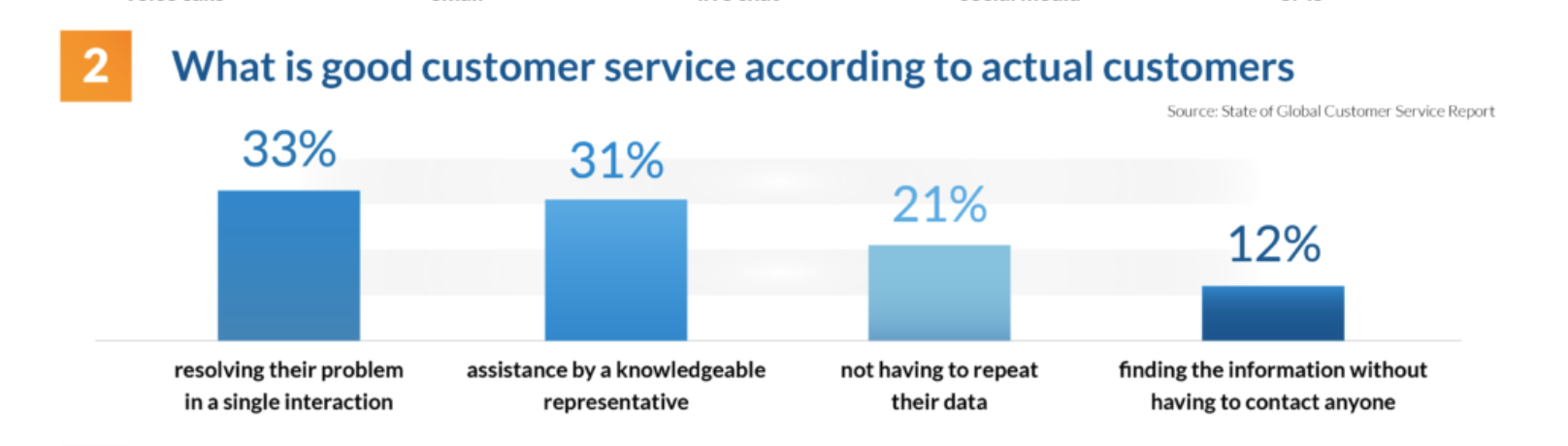 The first call resolution rate is another major metric that measures the percentage of customer issues resolved during the first interaction with a support agent. A high first-call resolution rate indicates that the support team is well-trained and equipped to handle customer inquiries, which can lead to higher satisfaction and loyalty. Also, the data shows that 33% of people believe that solving their request during one interaction signals sound customer service.